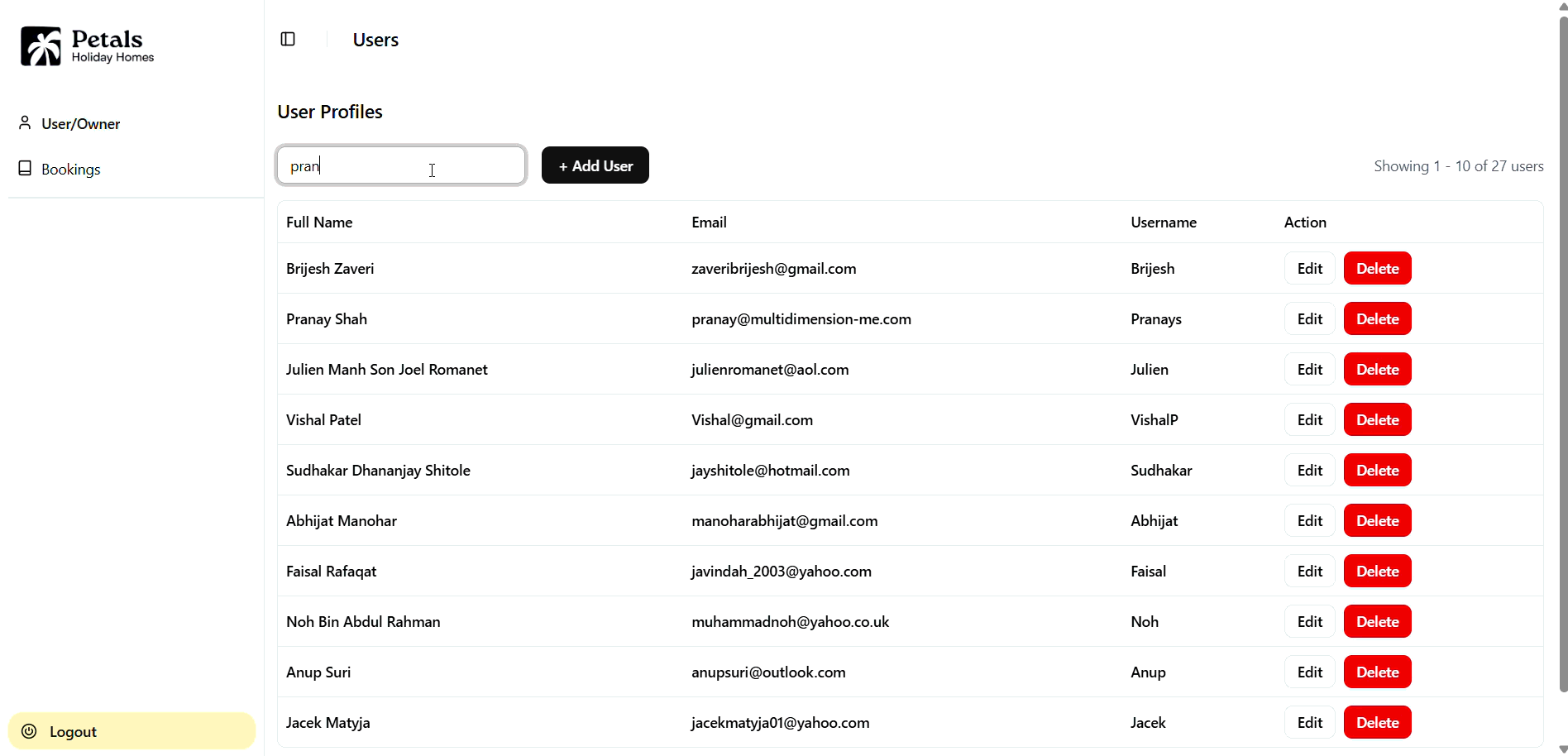 Managing multiple properties, bookings, and owner records had become increasingly complex for Petals. They needed a centralized platform that could handle booking histories, upcoming reservations, and performance tracking while offering property owners an easy way to view their income and occupancy data. The challenge was to design a two-sided CRM system that worked seamlessly for administrators and property owners, with real-time updates, accuracy, and an intuitive interface.Managing multiple properties, bookings, and owner records had become increasingly complex for Petals. They needed a centralized platform that could handle booking histories, upcoming reservations, and performance tracking while offering property owners an easy way to view their income and occupancy data. The challenge was to design a two-sided CRM system that worked seamlessly for administrators and property owners, with real-time updates, accuracy, and an intuitive interface.